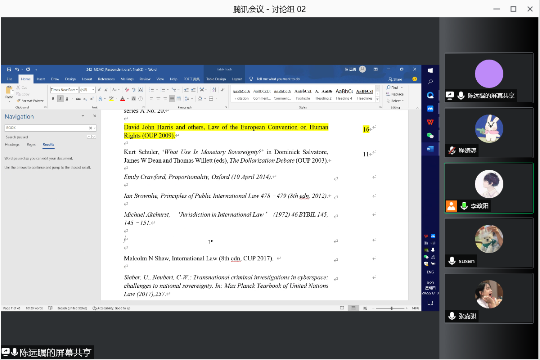 队员们寒假期间线上合作进行书状撰写工作