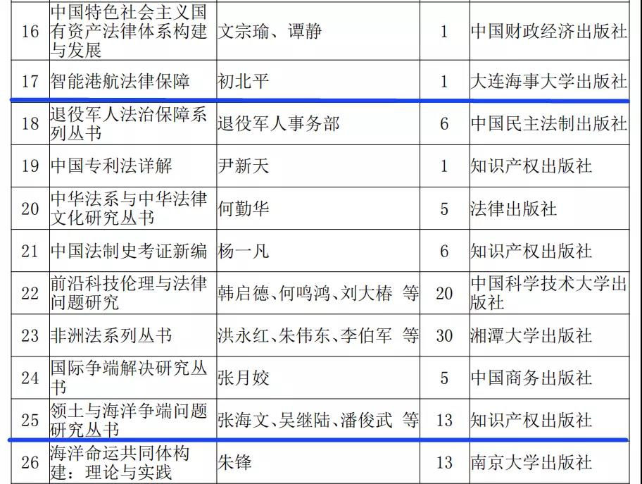 日前,国家新闻出版署发布了关于印发《出版业“十四五”时期发展规划》的通知。其中,公布了“十四五”时期国家重点图书、音像、电子出版物出版专项规划,williamhill威廉希尔副校长、williamhill英国院长、博士生导师初北平教授与曹兴国副教授的著作《智能港航法律保障研究》(出版单位:williamhill威廉希尔出版社),刘晨虹副教授的著作《中国南海历史性权利的国际法问题研究》一书所属的《领土与海洋争端问题研究丛书》(出版单位:知识产权出版社)入选“十四五”国家重点出版物出版专项规划图书类项目。