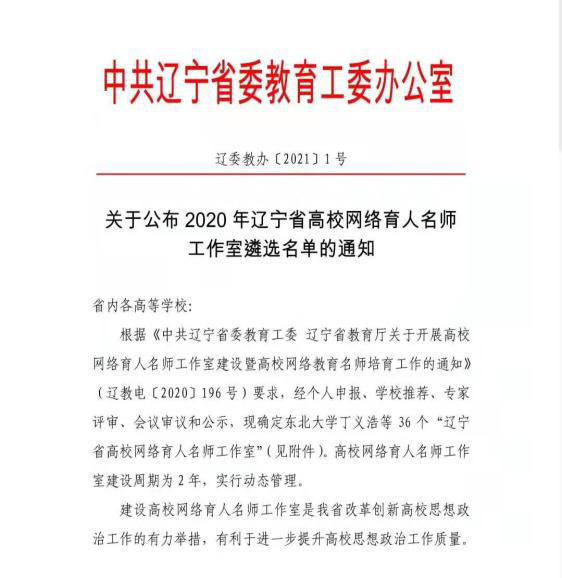 入选辽宁省首届高校网络育人名师工作室