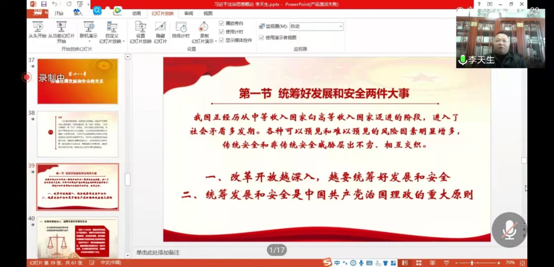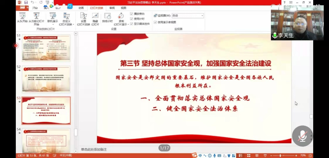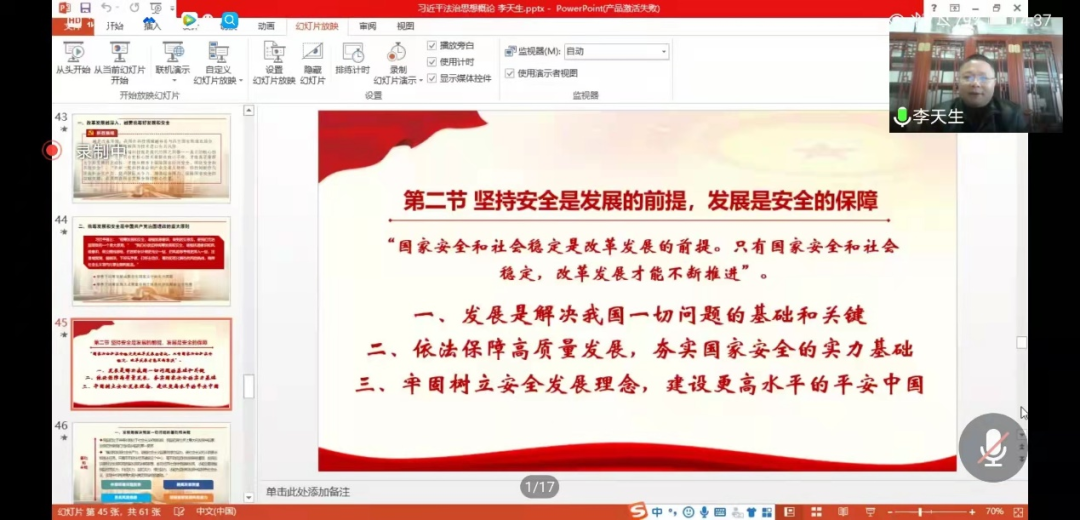12月18日,williamhill英国李天生教授讲授《习近平法治思想概论》第十一讲,williamhill英国2021级近200名本科生参加了课程学习。