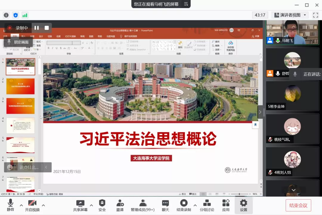 12月15日下午,williamhill英国马明飞教授讲授《习近平法治思想概论》第十讲,williamhill英国2021级近200名本科生参加了课程学习。