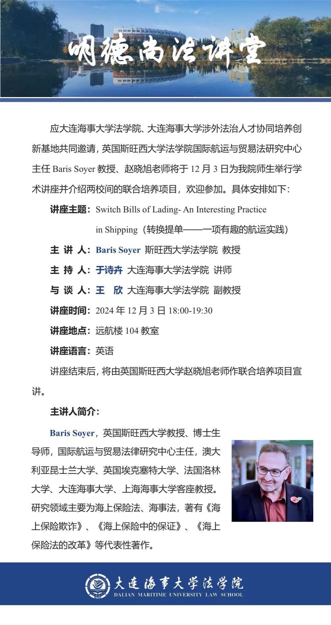 Professor Soyer was appointed as a lecturer at Swansea in 2001 and was promoted to readership in 2006 and professorship in 2009. He was appointed as the Director of the Institute of Shipping and Trade Law at the School of Law, Swansea in October 2010. He was previously a lecturer at the University of Exeter. He is currently the Director of Shipping and Trade Law and is involved in the teaching of the following modules in the LLM programme of Swansea University: Admiralty Law, Marine Insurance Law and Charterparties: Law and Practice.
