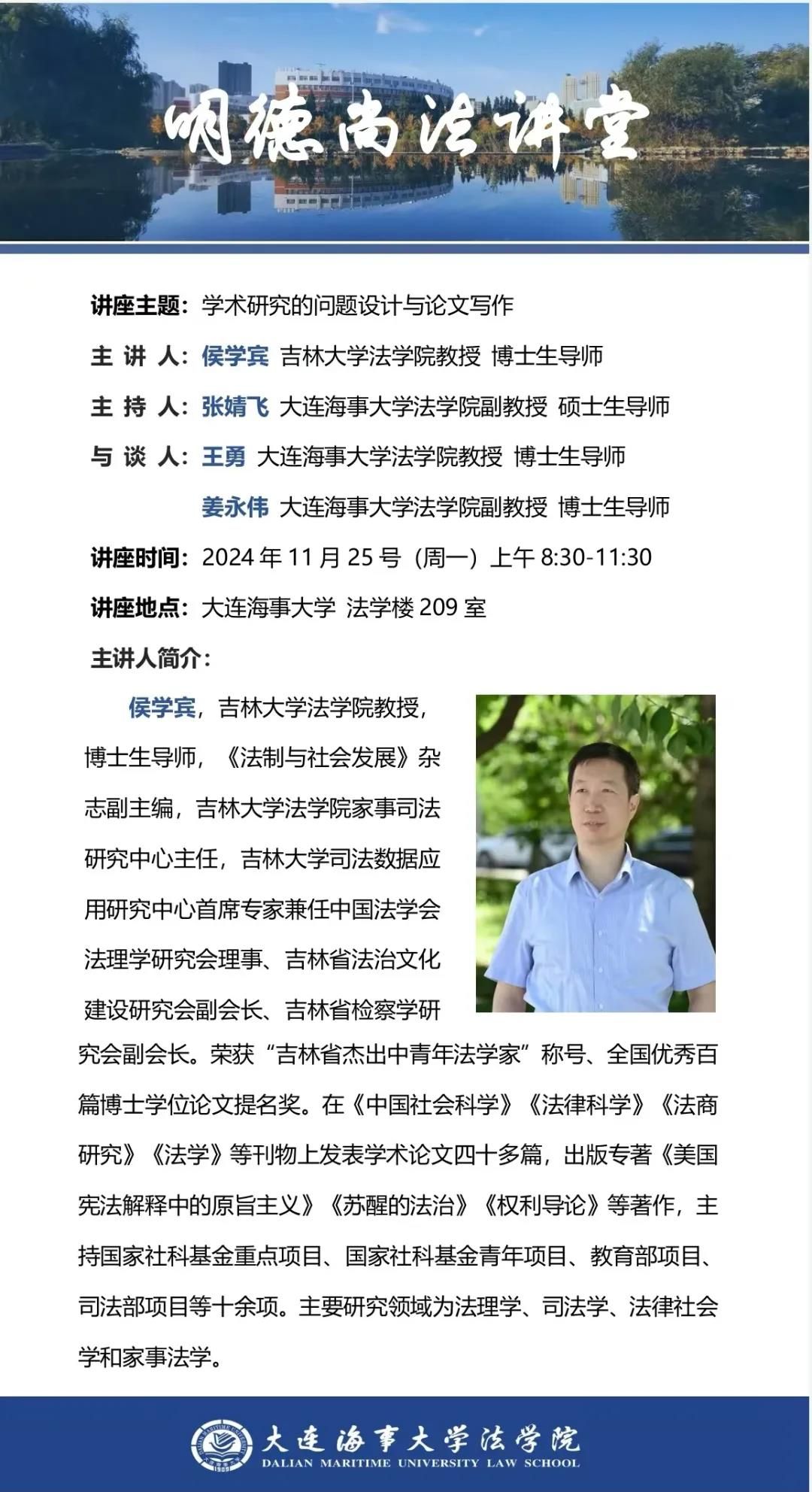 讲座通知|【明德尚法讲堂】侯学宾教授:学术研究的问题设计与论文写作
