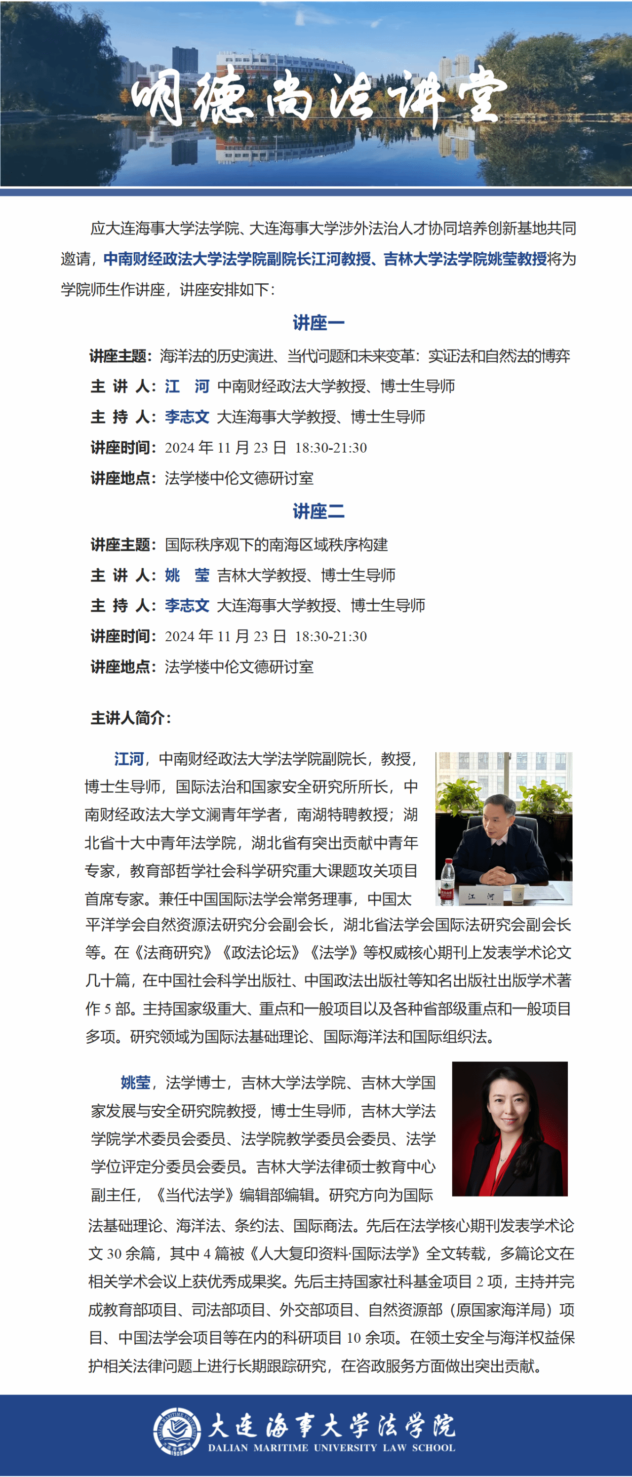 讲座通知 |【明德尚法讲堂】江河教授、姚莹教授讲座通知