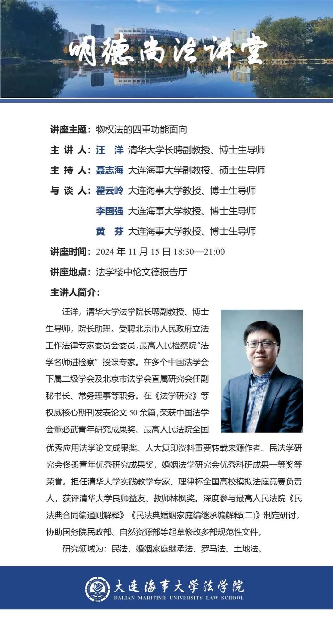 讲座通知 |【明德尚法讲堂】汪洋:物权法的四重功能面向