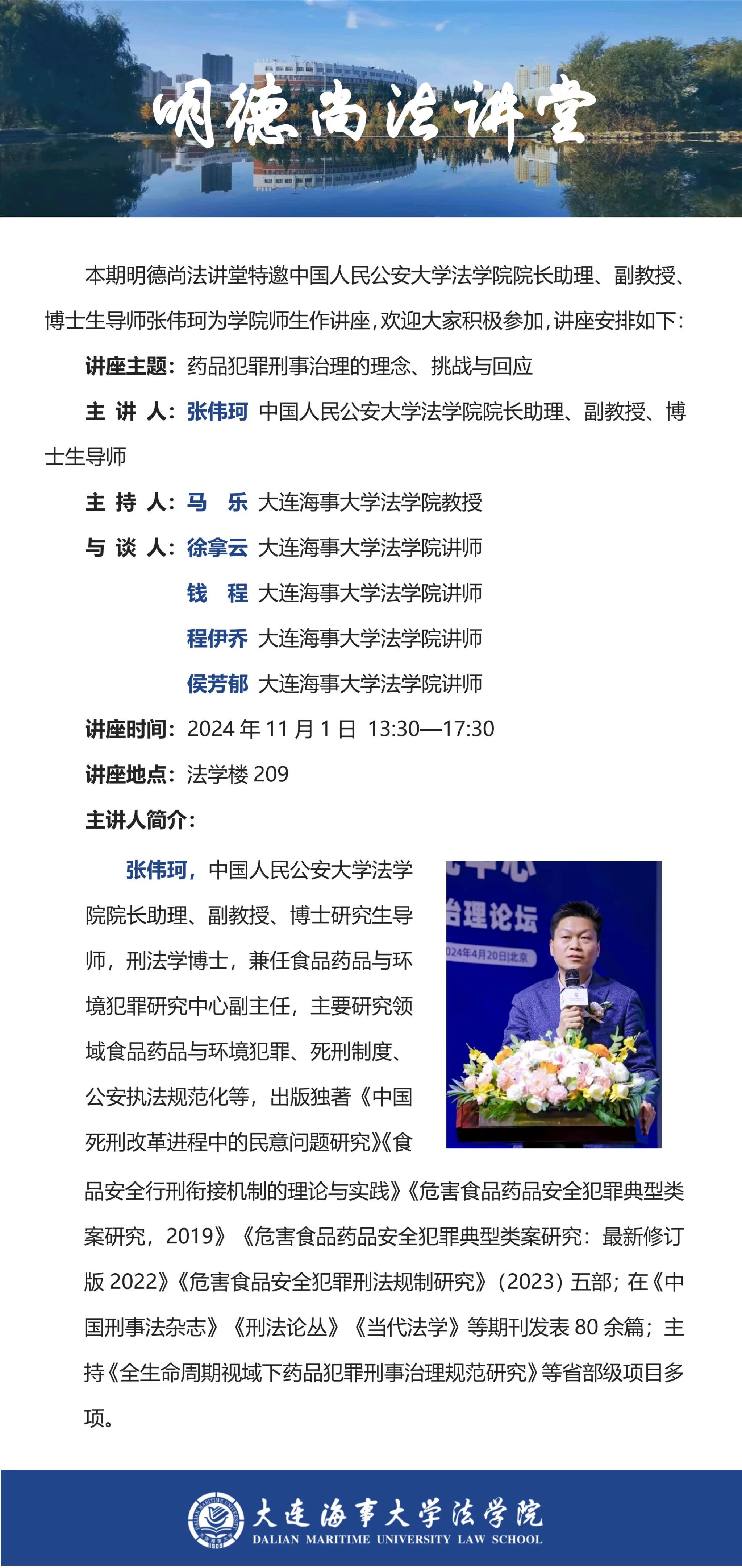 讲座通知 |【明德尚法讲堂】张伟珂:药品犯罪刑事治理的理念、挑战与回应