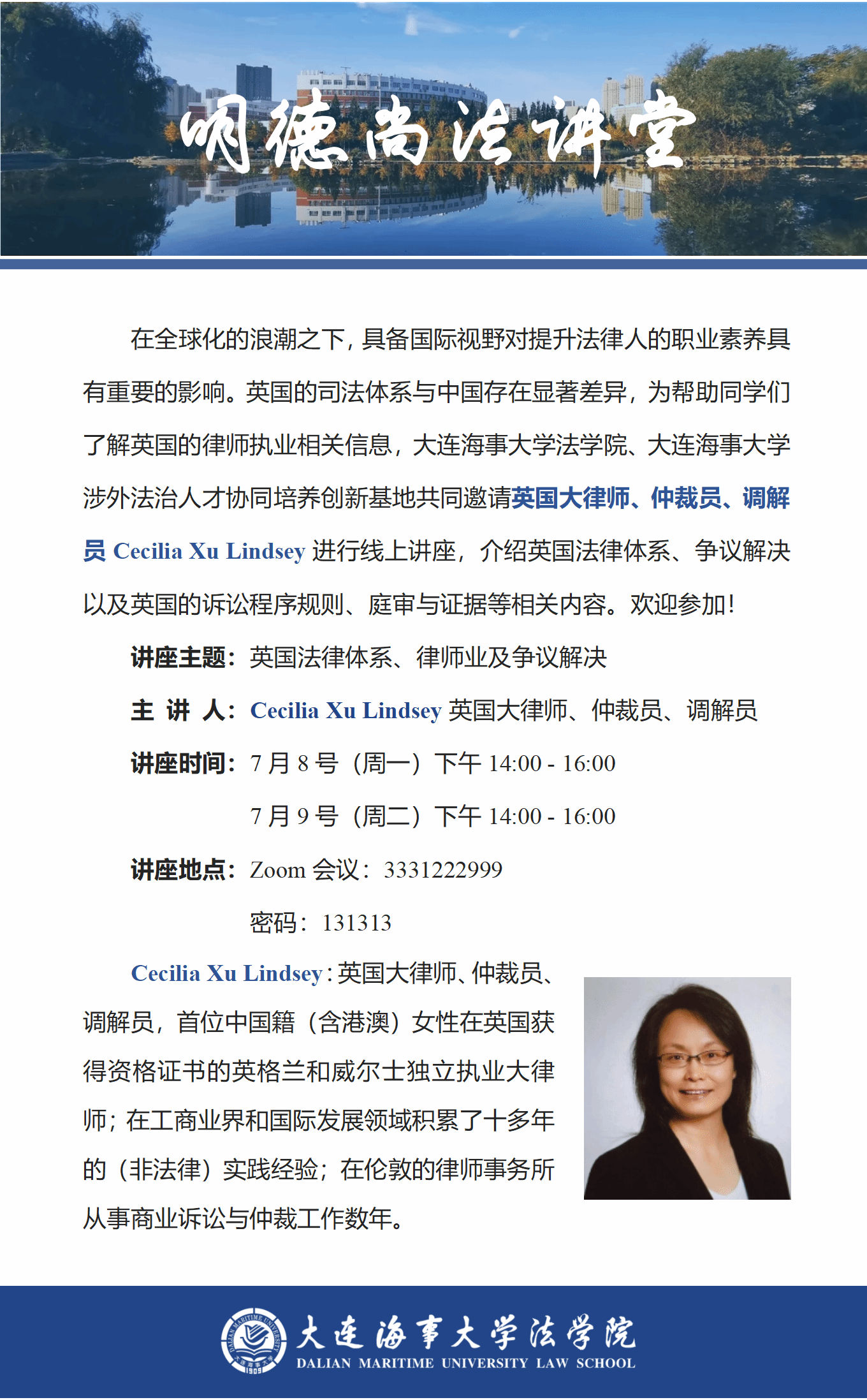 讲座通知 |【明德尚法讲堂】Cecilia Xu Lindsey:英国法律体系、律师业及争议解决