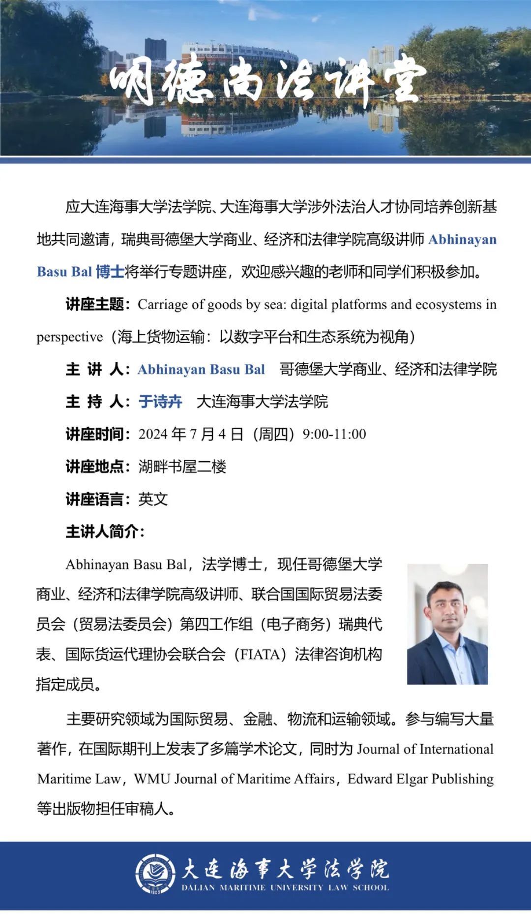 讲座通知 |【明德尚法讲堂】Abhinayan Basu Bal:海上货物运输:以数字平台和生态系统为视角