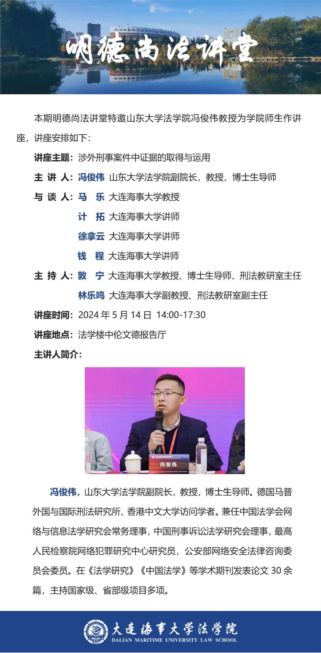 讲座通知 |【明德尚法讲堂】冯俊伟教授:涉外刑事案件中证据的取得与运用