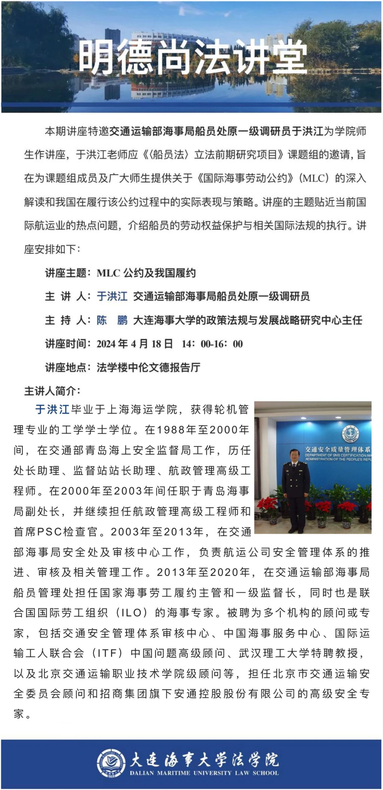讲座通知 |【明德尚法讲堂】于洪江:MLC公约及我国履约