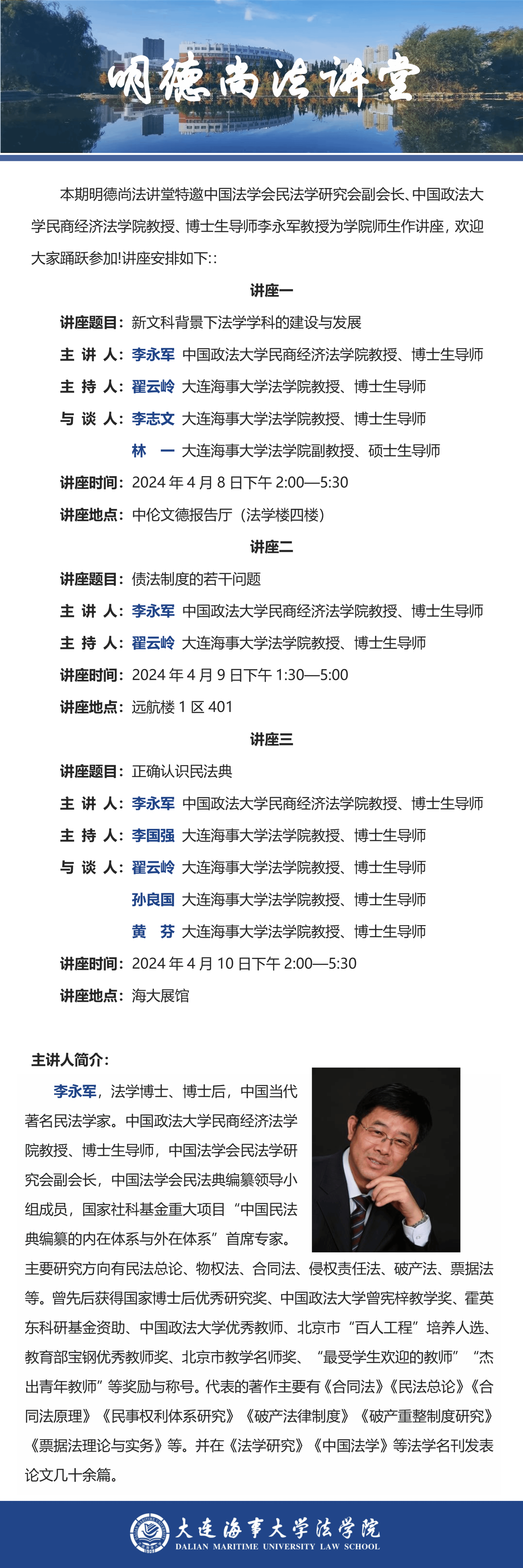 讲座通知 |【明德尚法讲堂】李永军教授讲座通知