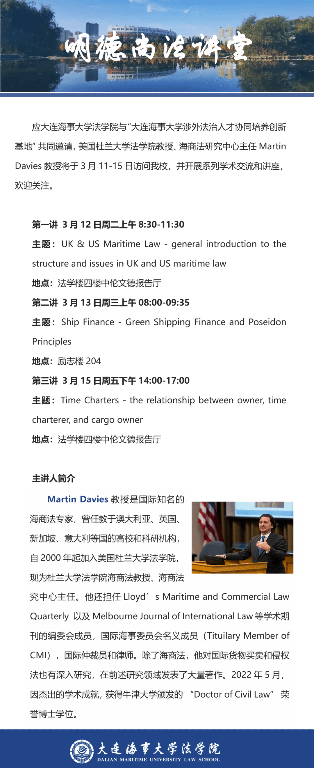 讲座通知 |【明德尚法讲堂】Martin Davies: 英美海商法系列讲座