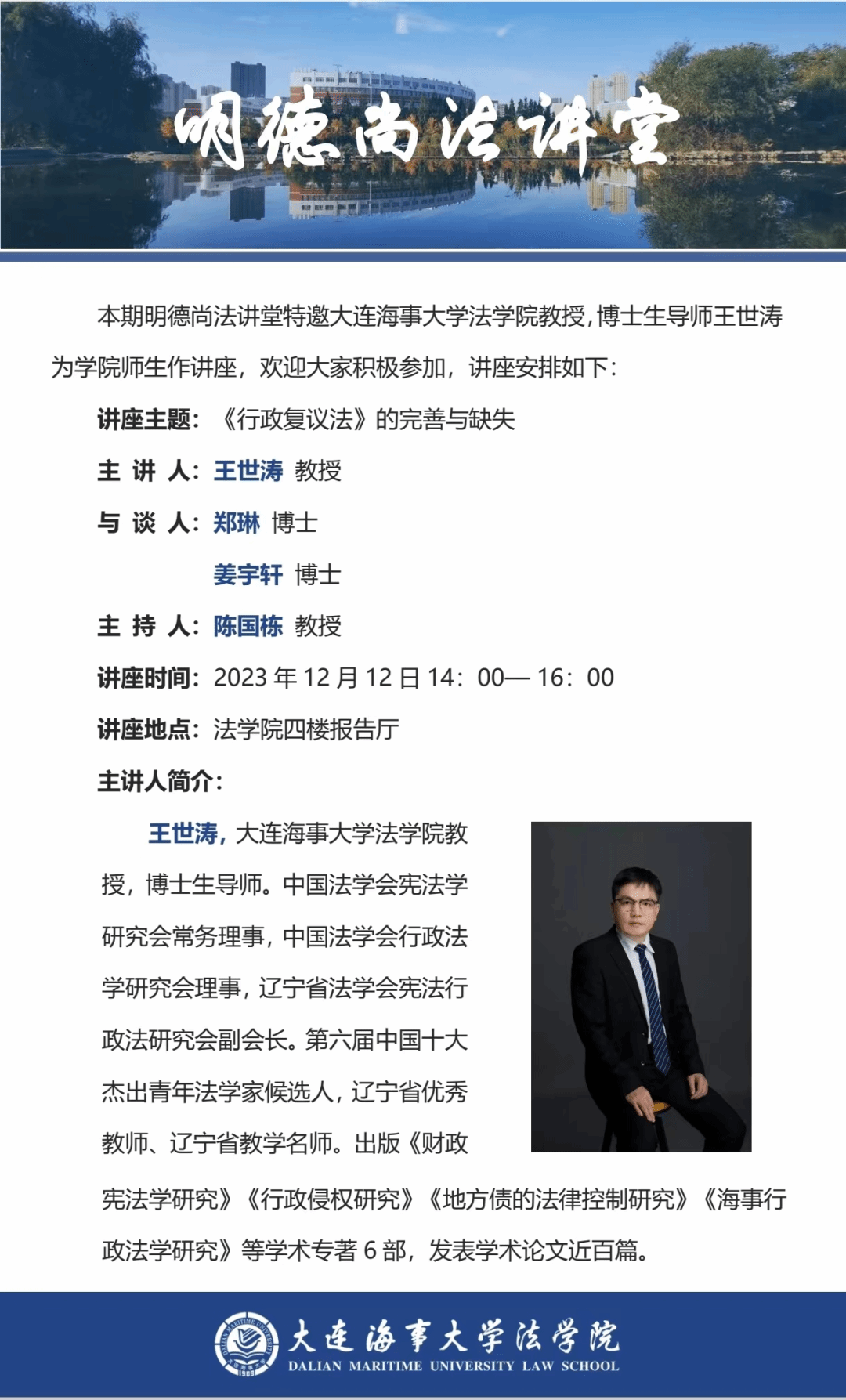 讲座通知 |【明德尚法讲堂】王世涛教授:《行政复议法》的完善与缺失