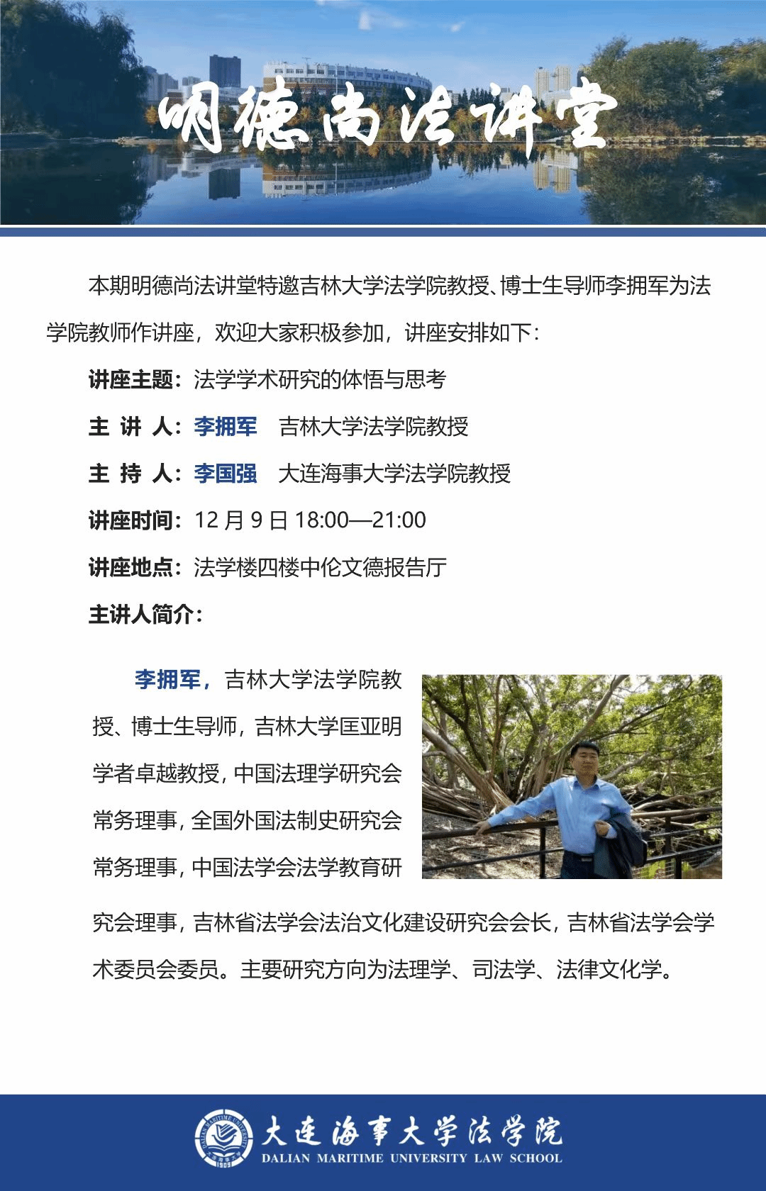 讲座通知 |【明德尚法讲堂】李拥军教授:法学学术研究的体悟与思考