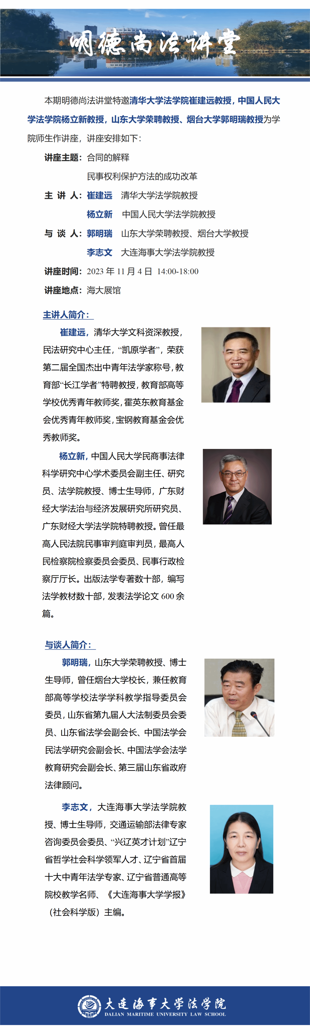 讲座通知 |【明德尚法讲堂】合同的解释及民事权利保护方法改革