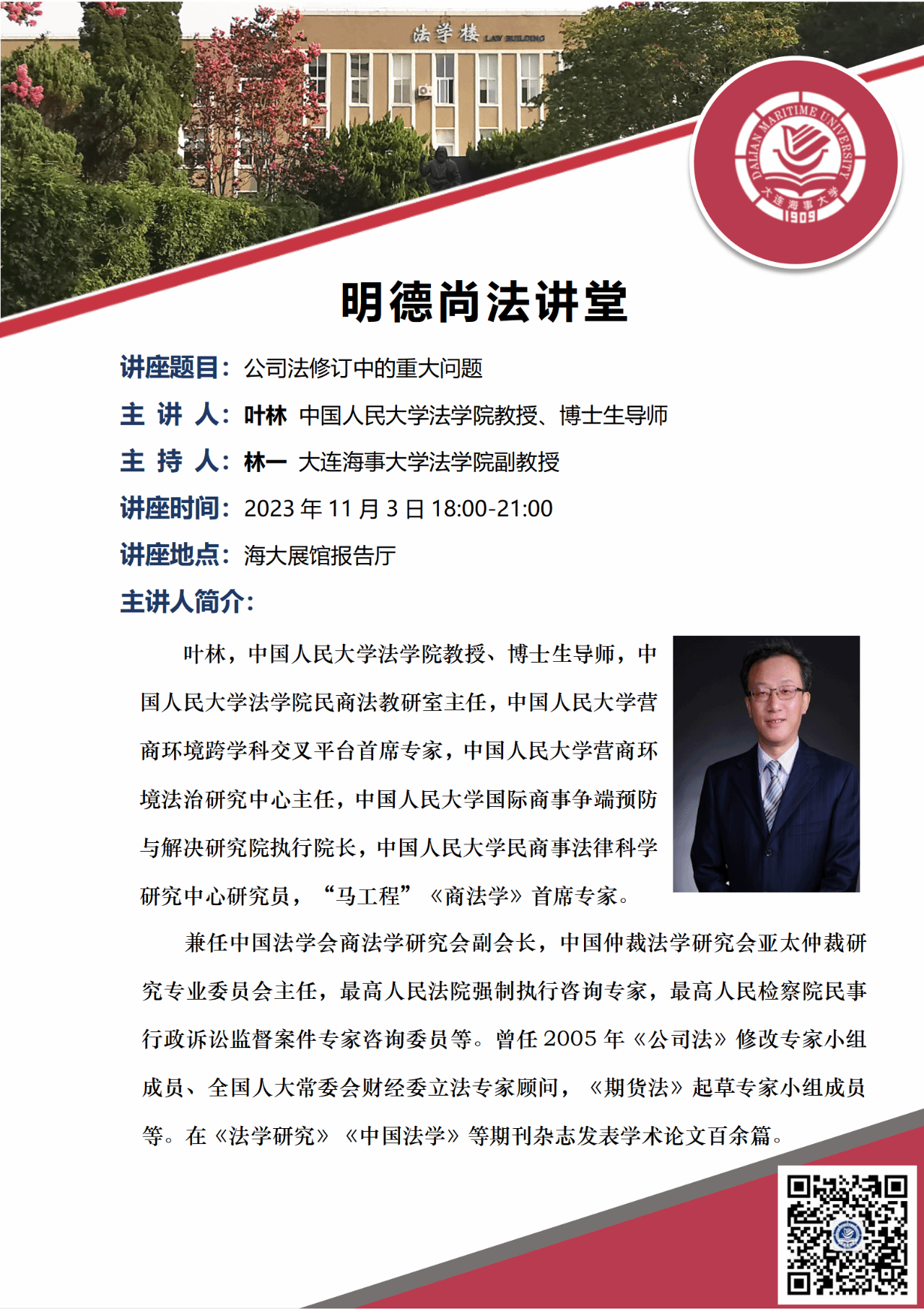 讲座通知 |【明德尚法讲堂】叶林:公司法修订中的重大问题