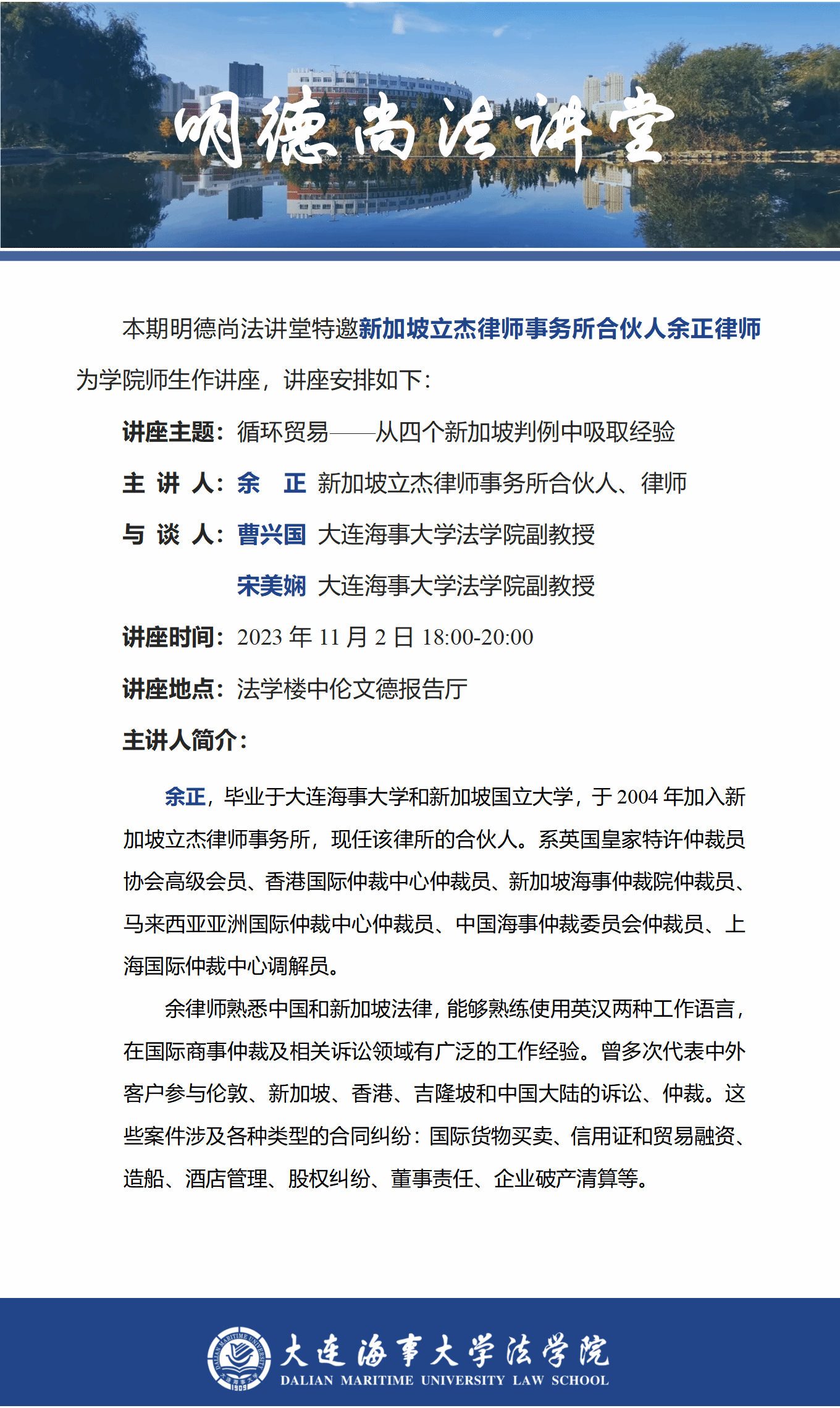 讲座通知 |【明德尚法讲堂】余正:循环贸易——从四个新加坡判例中吸取经验
