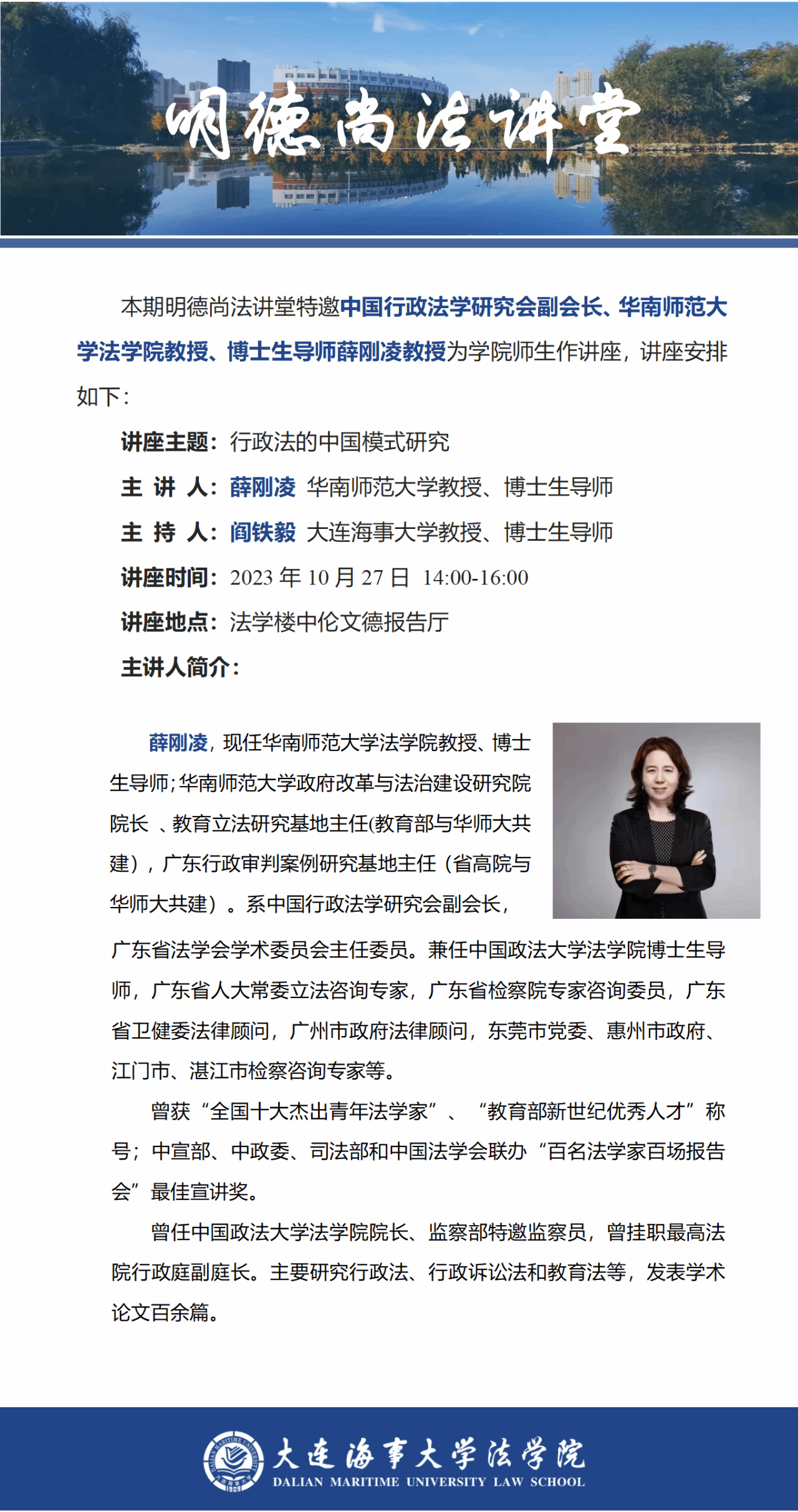 讲座通知 |【明德尚法讲堂】薛刚凌教授:行政法的中国模式研究