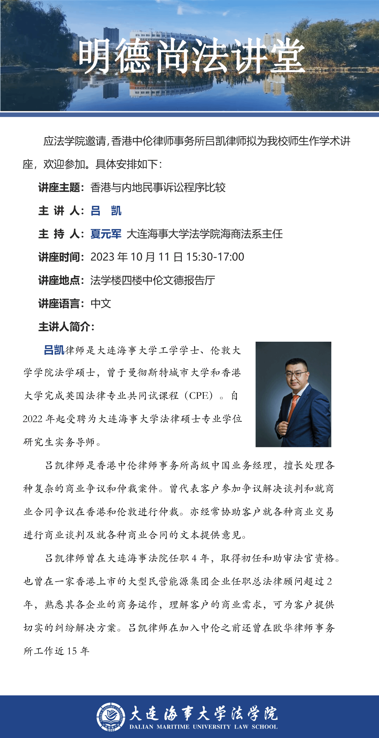 讲座通知 |【明德尚法讲堂】吕凯:香港与内地民事诉讼程序比较