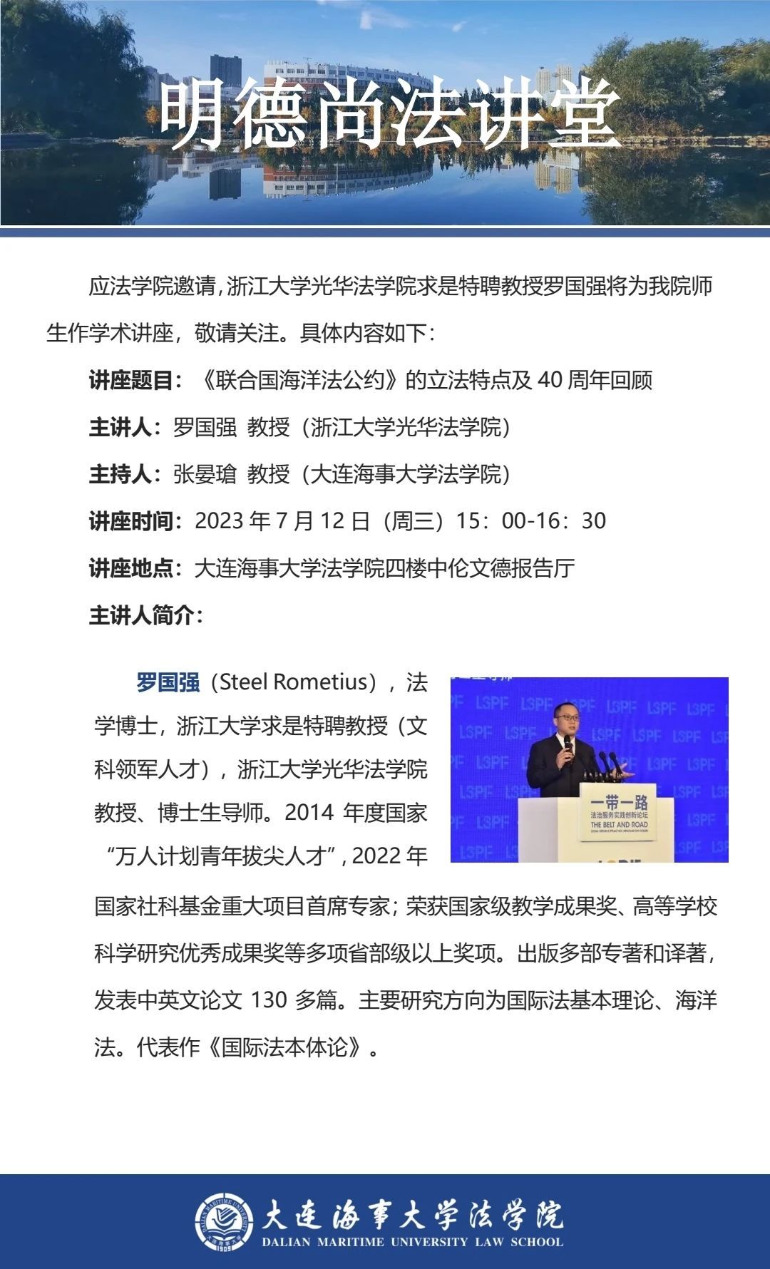讲座通知 |【明德尚法讲堂】罗国强教授:《联合国海洋法公约》的立法特点及40周年回顾