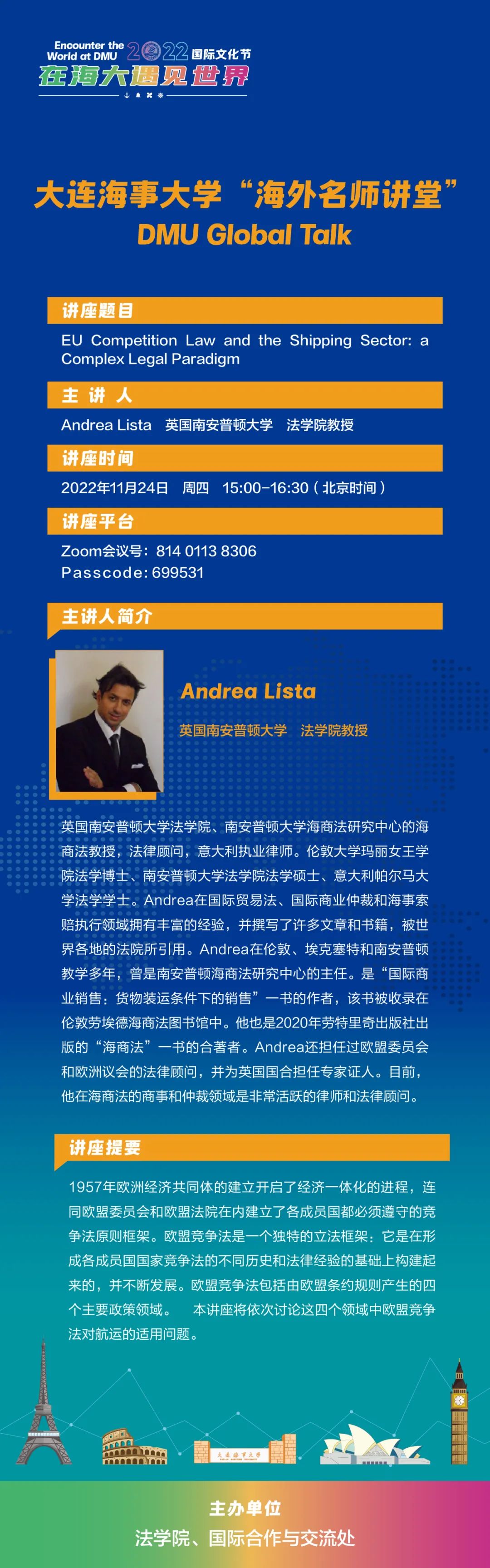 通知 |【williamhill威廉希尔“海外名师讲堂”】英国南安普顿大学Andrea Lista教授讲座通知