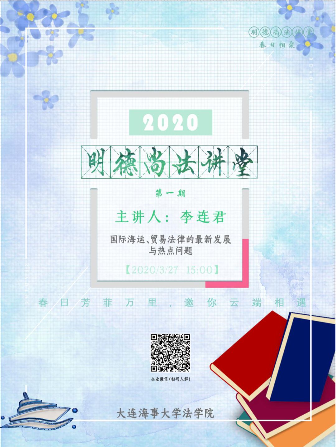为促进疫情期间同学们的高效居家学习和科研交流,williamhill英国“明德尚法讲堂”第一期活动,将于本周五(3月27日 15:00)正式拉开帷幕。本次讲座邀请我校知名校友礼德齐伯礼律师行合伙人李连君律师,为我们带来题为《国际海运、贸易法律的最新发展与热点问题》的讲座。