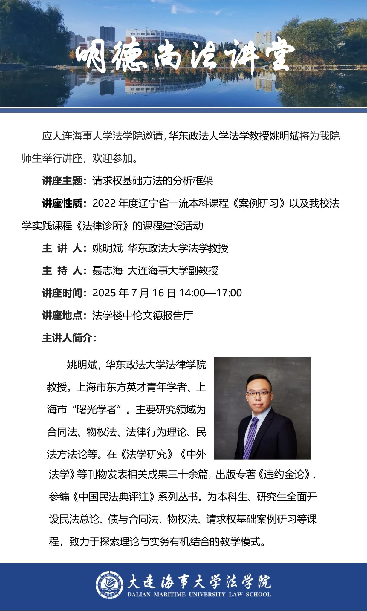 讲座通知 | 【明德尚法讲堂】姚明斌教授:请求权基础方法的分析框架