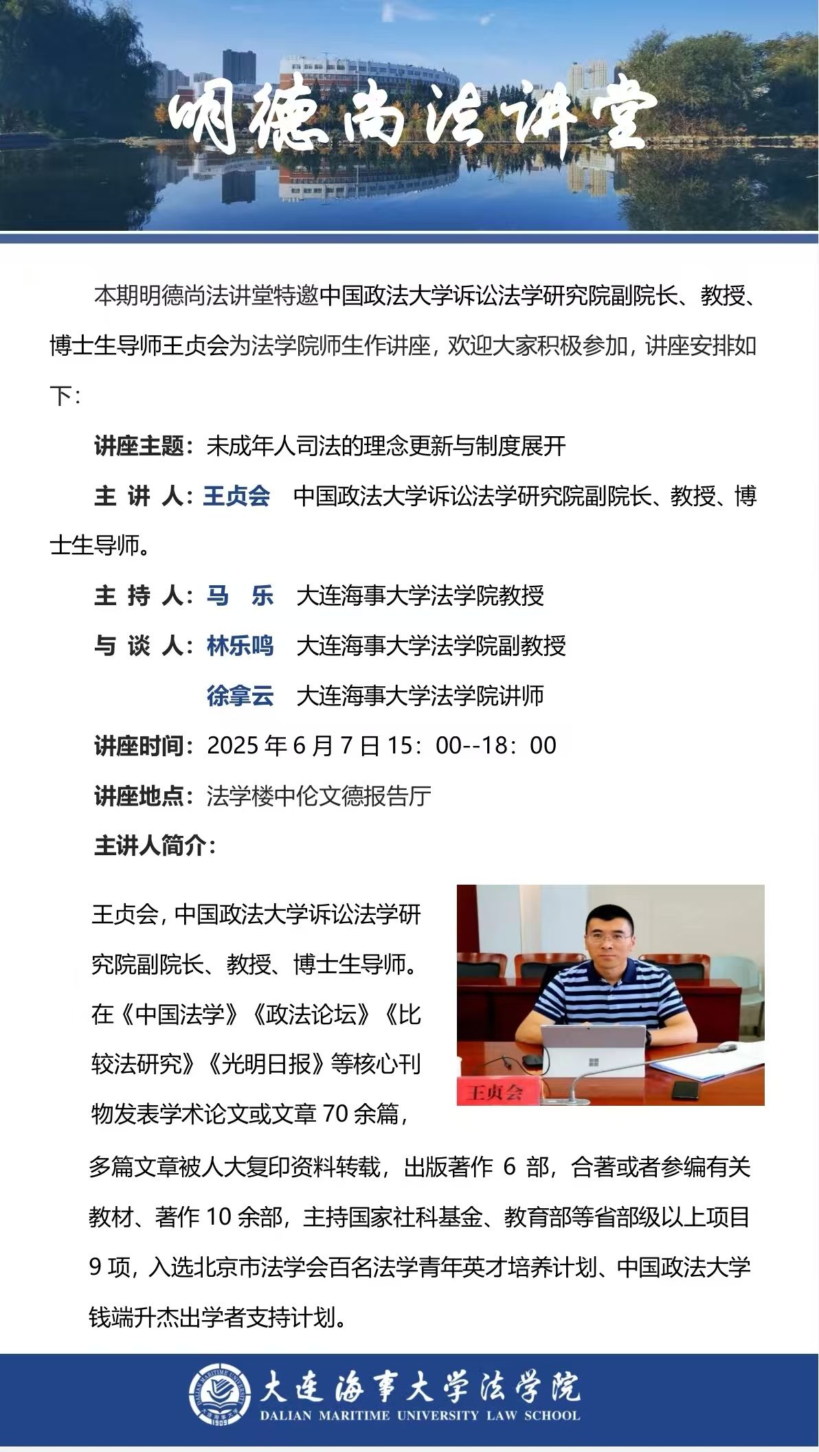 讲座通知 |【明德尚法讲堂】王贞会教授:未成年人司法的理念更新与制度展开