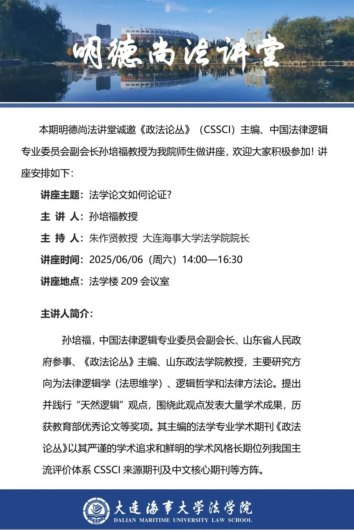 讲座通知 | 【明德尚法讲堂】孙培福教授:法学论文如何论证?