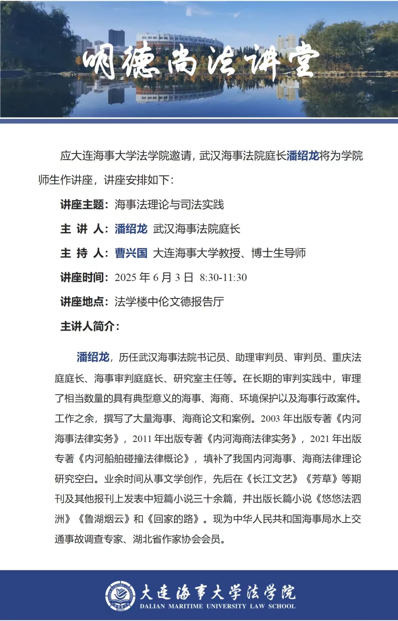 讲座通知 |【明德尚法讲堂】潘绍龙:海事法理论与司法实践