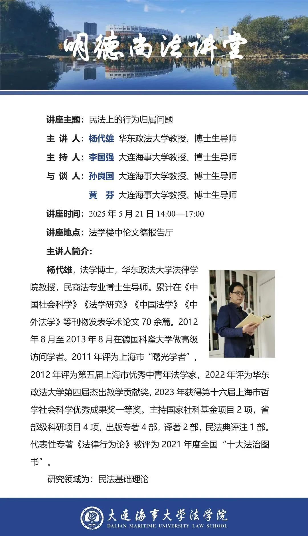 讲座通知 |【明德尚法讲堂】杨代雄教授:民法上的行为归属问题