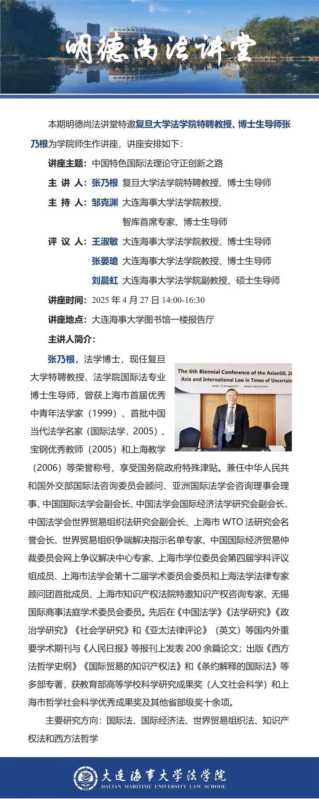 讲座通知 | 【明德尚法讲堂】张乃根教授:中国特色国际法理论守正创新之路
