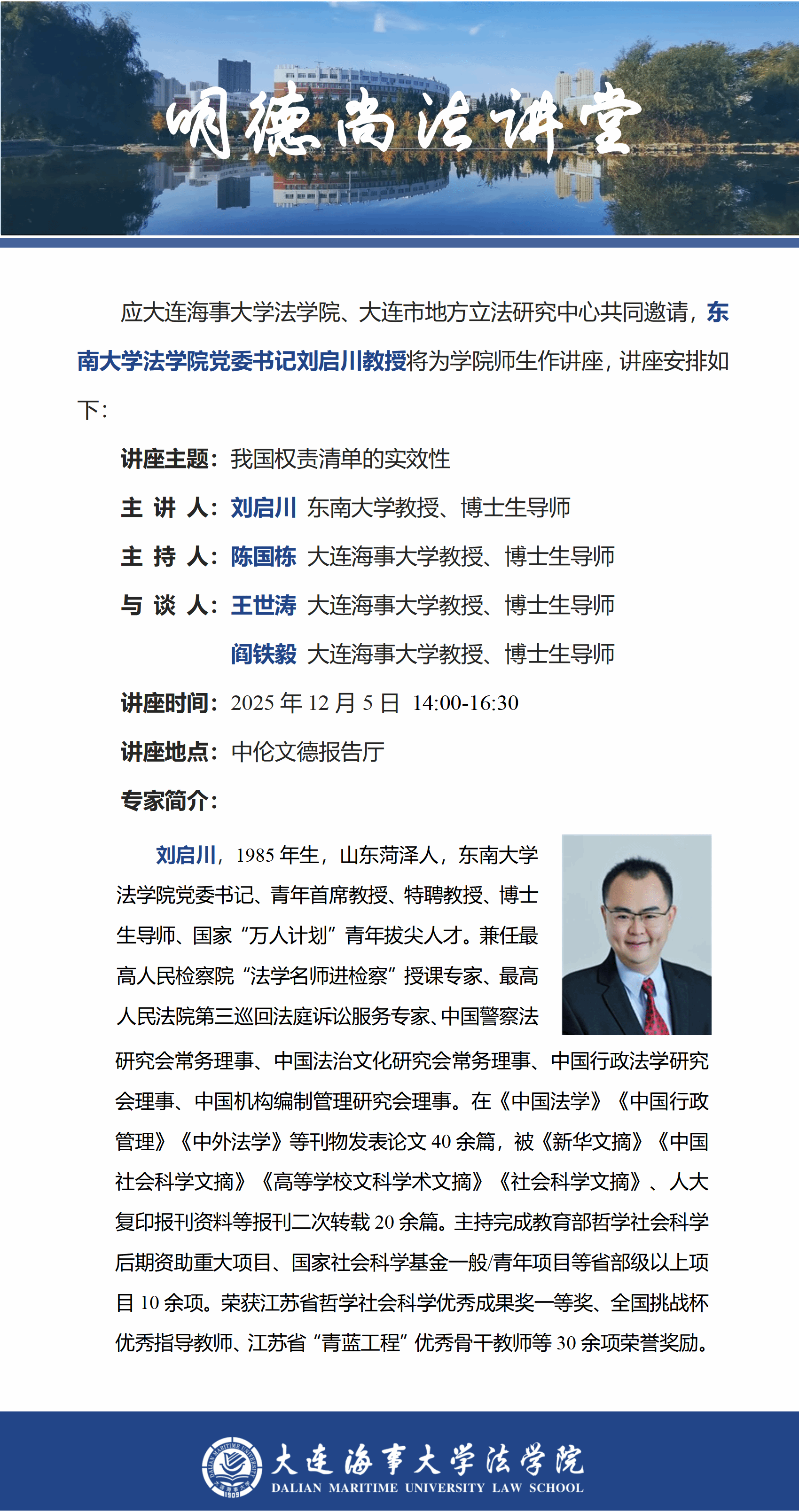 讲座通知 |【明德尚法讲堂】刘启川教授:我国权责清单的实效性
