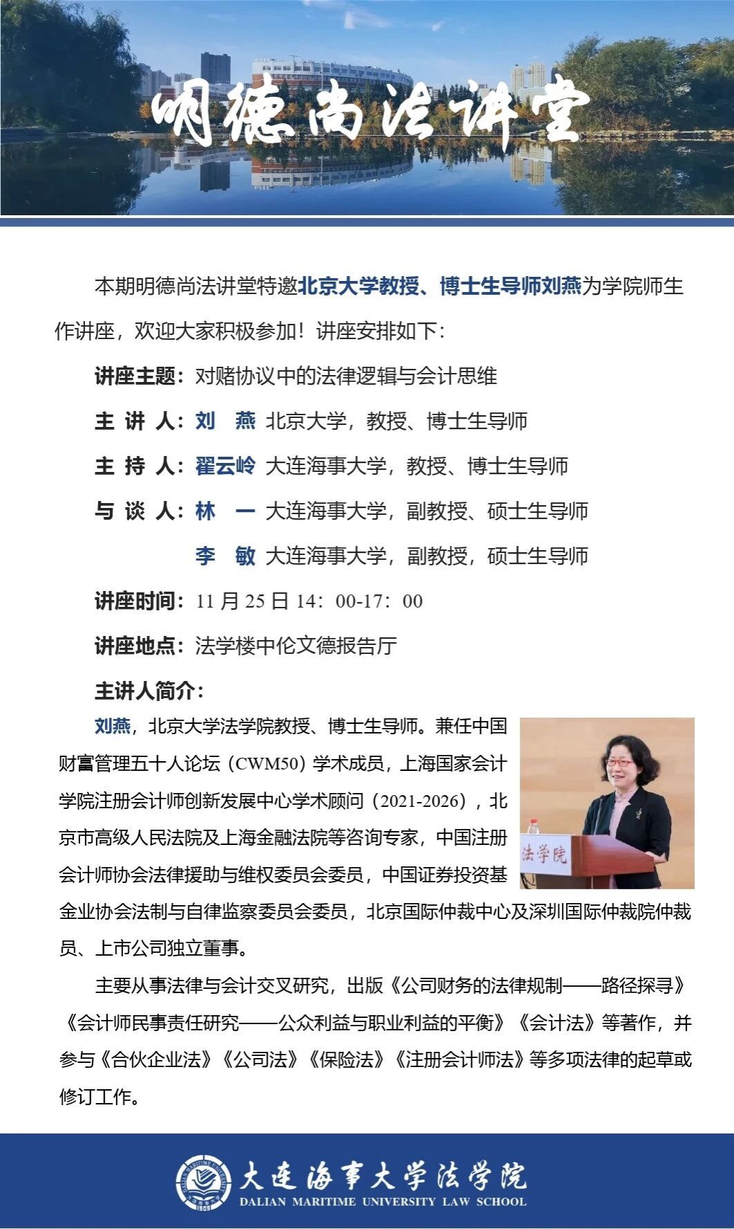 讲座通知 | 【明德尚法讲堂】刘燕教授:对赌协议中的法律逻辑与会计思维