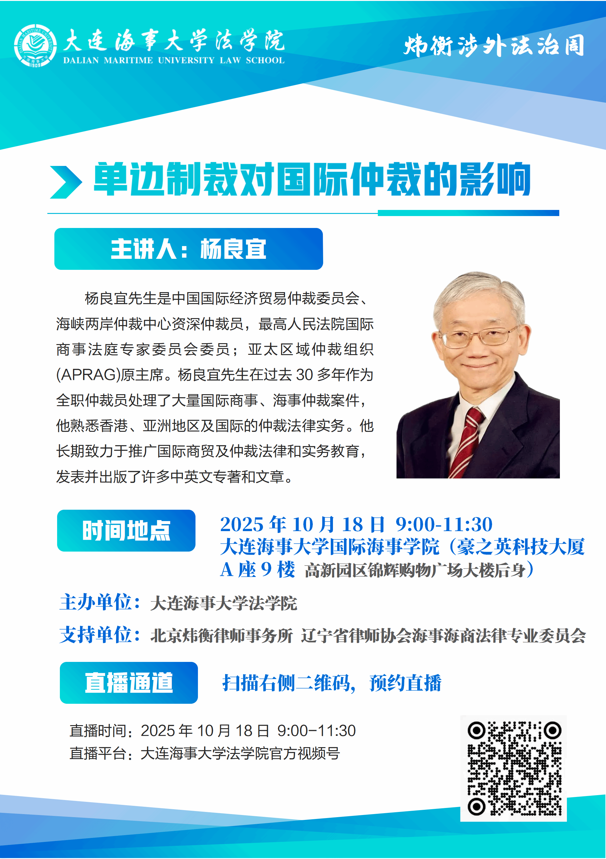 讲座通知 |【明德尚法讲堂】杨良宜:单边制裁对国际仲裁的影响