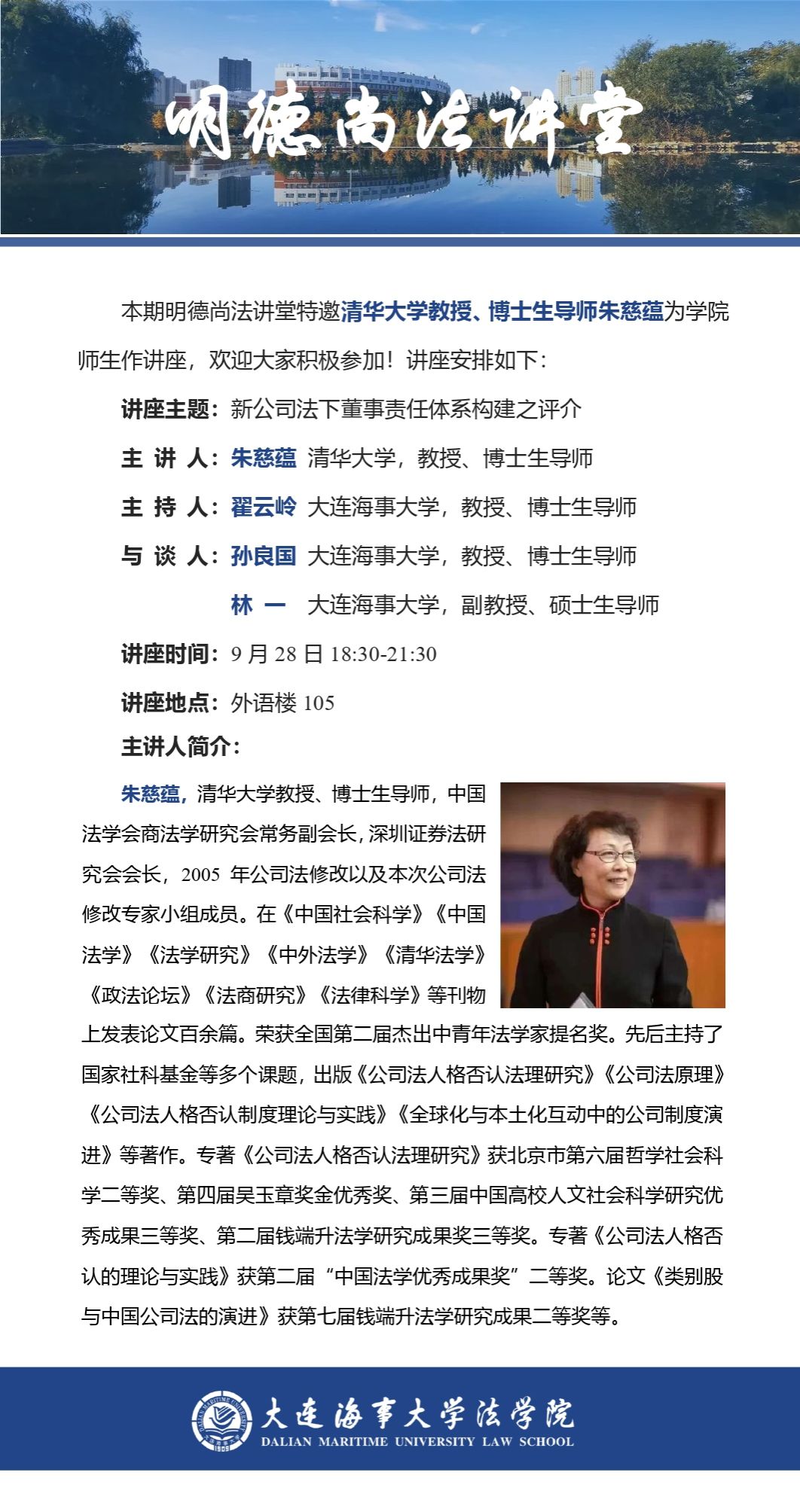 讲座通知 |【明德尚法讲堂】朱慈蕴教授:新公司法下董事责任体系构建之评介