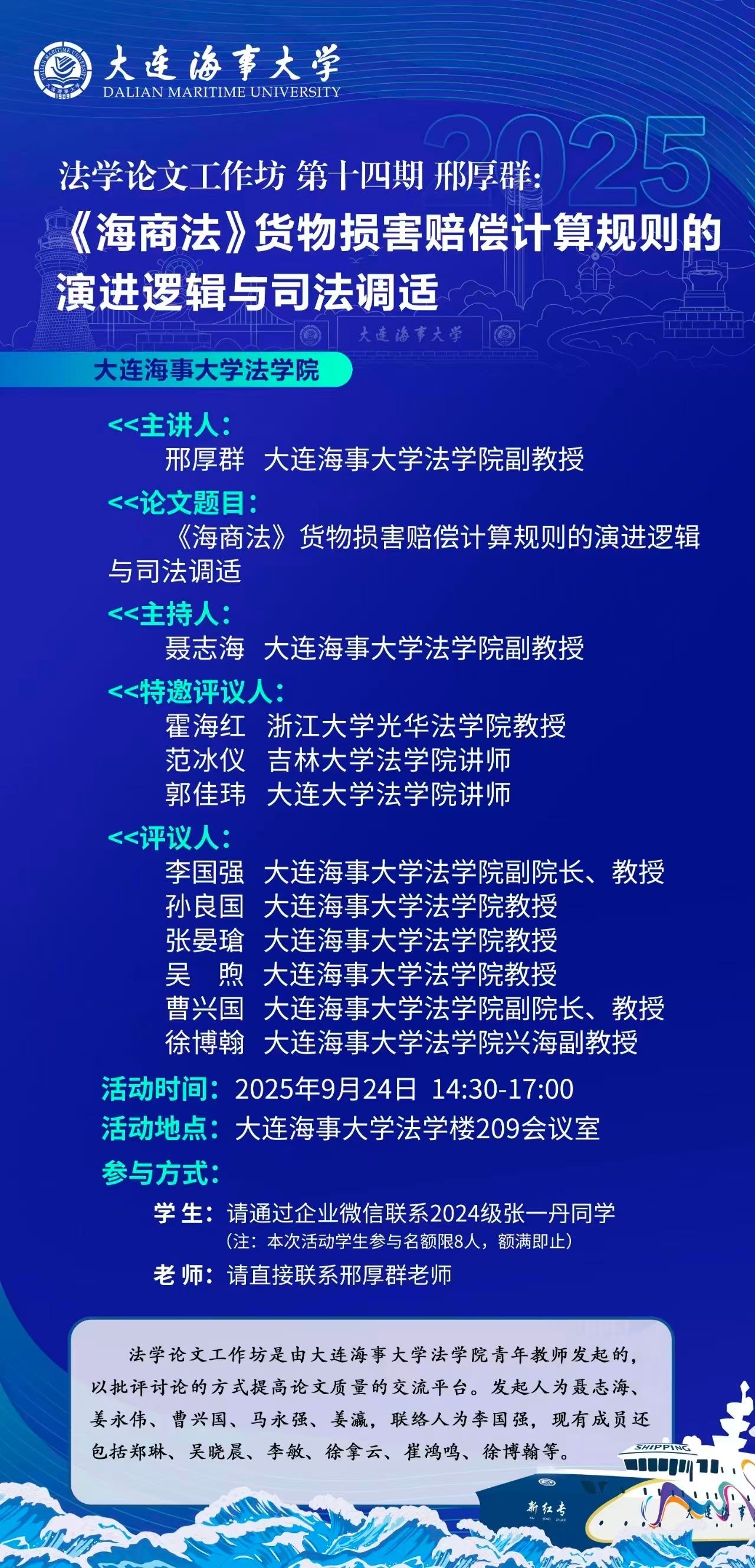活动通知 |【法学论文工作坊】第十四期 邢厚群:《海商法》货物损害赔偿计算规则的演进逻辑与司法调适
