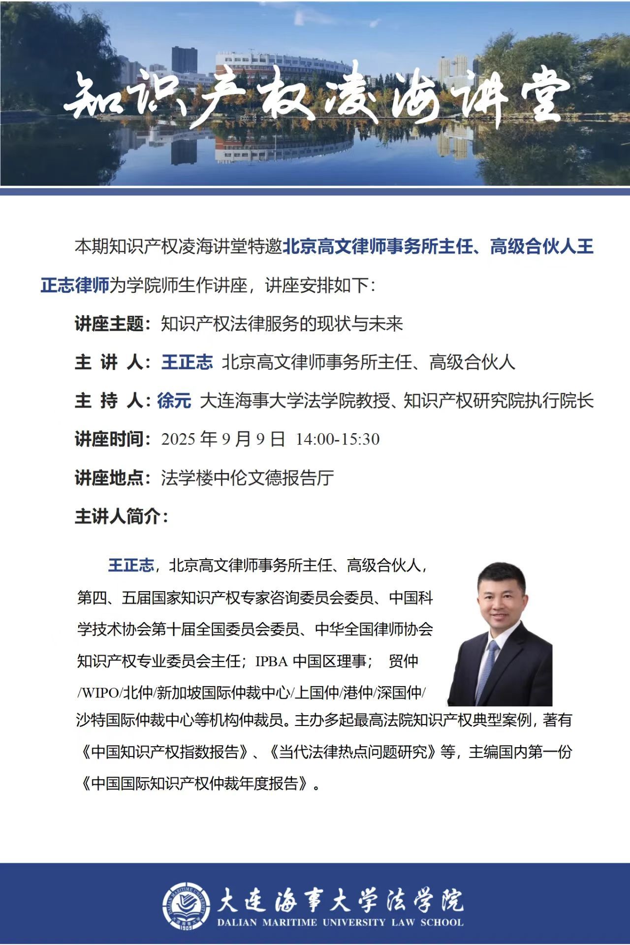 讲座通知 |【知识产权凌海讲堂】王正志主任:知识产权法律服务的现状与未来
