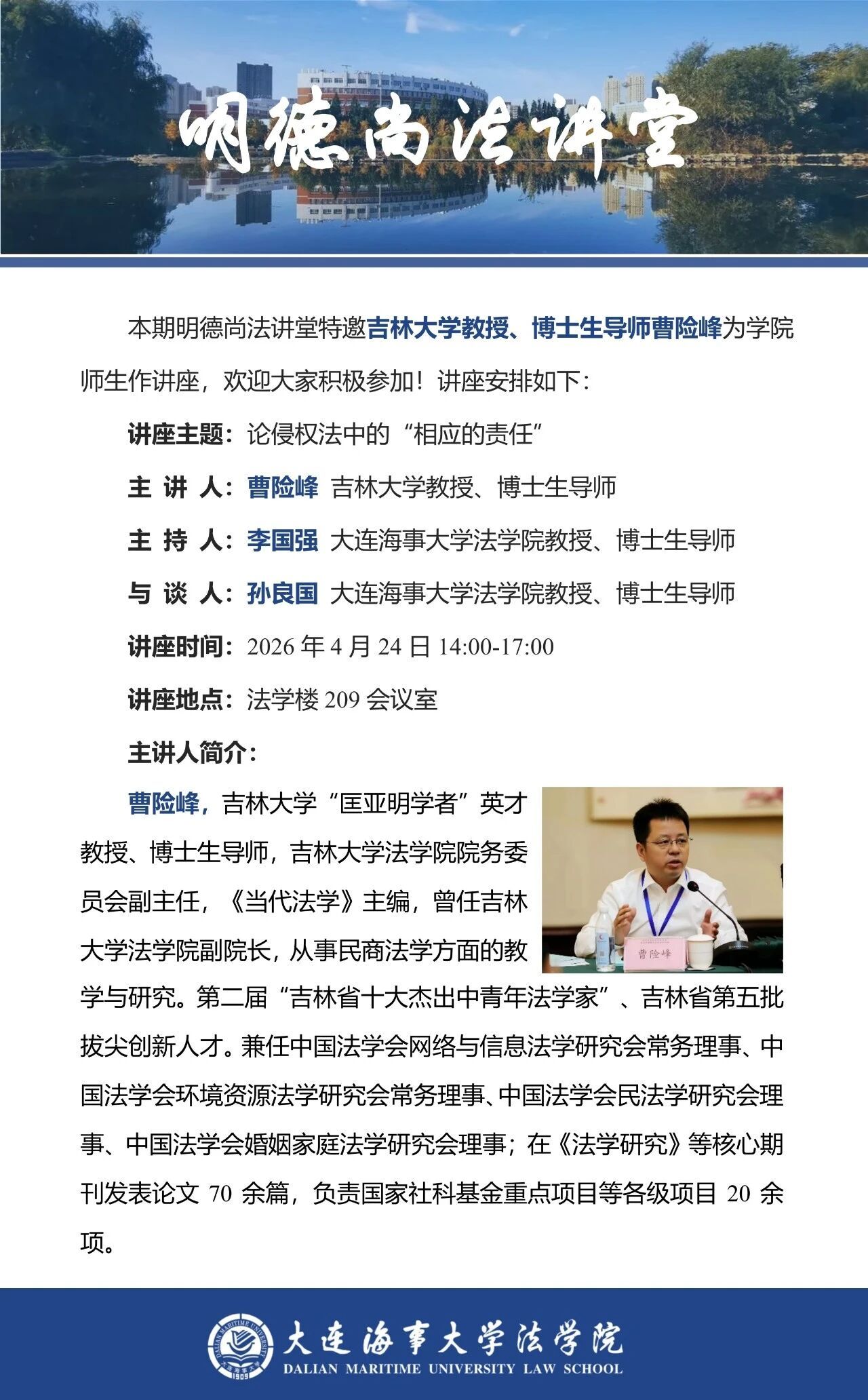 讲座通知 |【明德尚法讲堂】曹险峰教授:论侵权法中的“相应的责任”