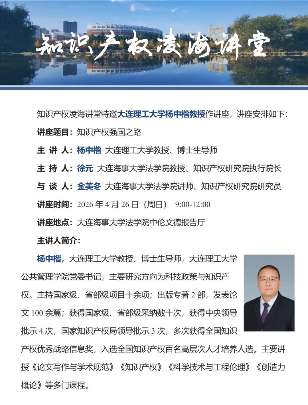 讲座通知 | 【知识产权凌海讲堂】杨中楷教授:知识产权强国之路