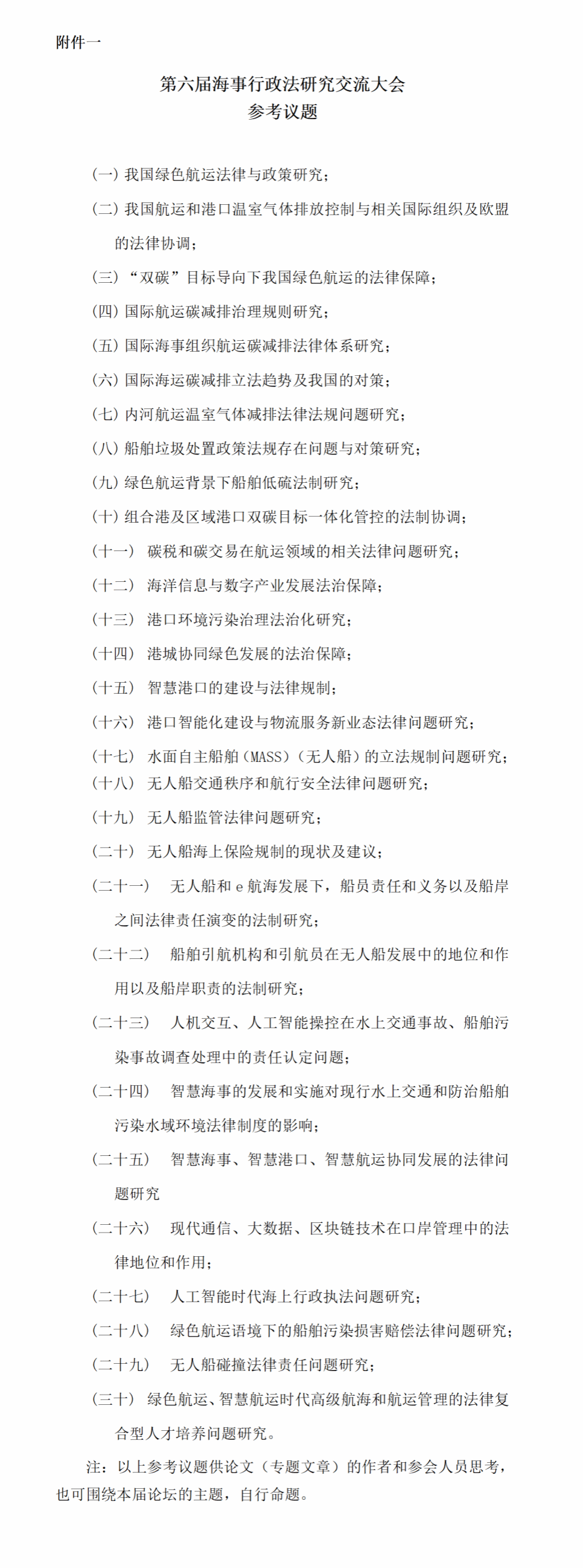 本届论坛将主要围绕绿色航运与智慧航运法治问题展开研讨(具体参考议题见附件一)。