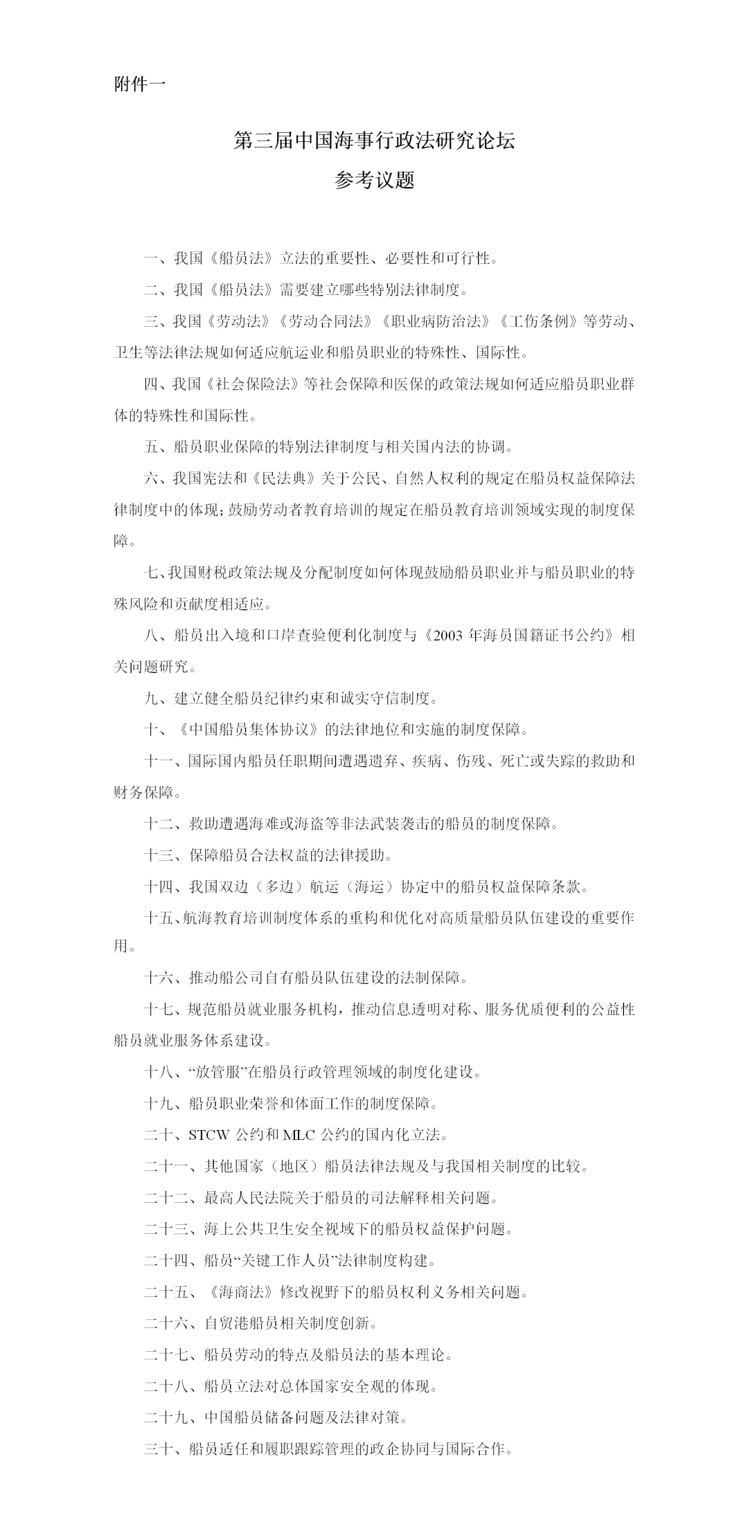 为推进我国海事领域行政法研究,服务国家交通强国、海洋强国建设重大发展战略,促进全社会对新时代高质量船员队伍建设法治保障的重视,并配合2021年6月25日“世界海员日”系列活动,由williamhill威廉希尔主办,williamhill威廉希尔中国海事政策法规与发展战略研究中心和辽宁省重点人文社科基地williamhill威廉希尔国际海事法律研究中心共同承办的第三届“中国海事行政法研究论坛”定于6月26日在大连举行,6月25日报到。现将会议有关事宜通知如下: