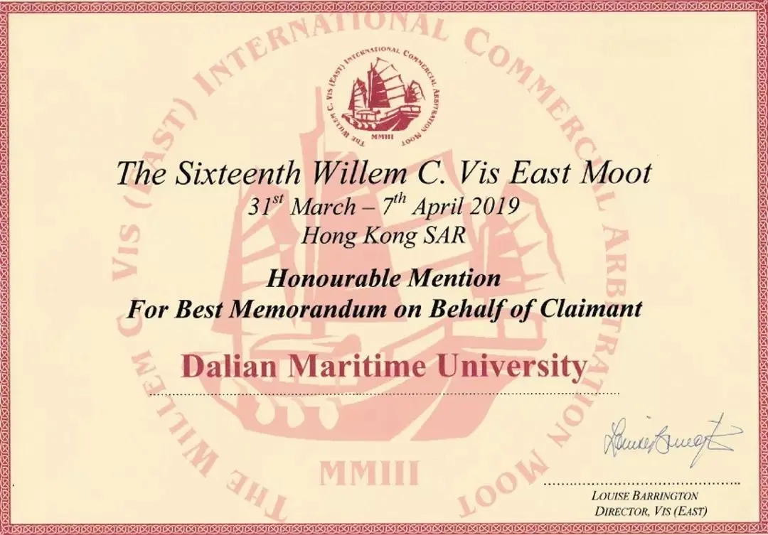第16届 Willem C. Vis International Commercial Arbitration Moot (East) 香港赛申请方最佳MEMO提名;