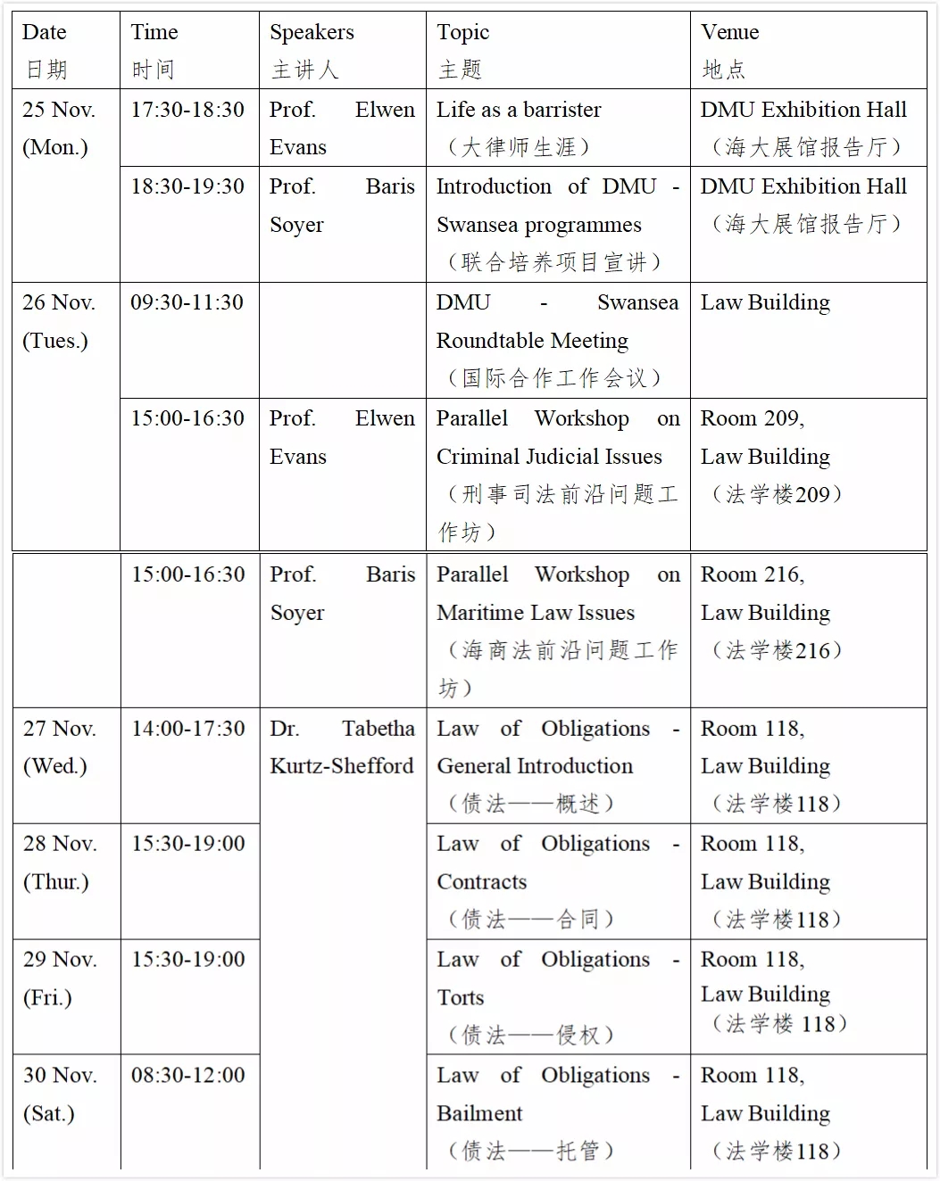 国际周活动安排 Agenda