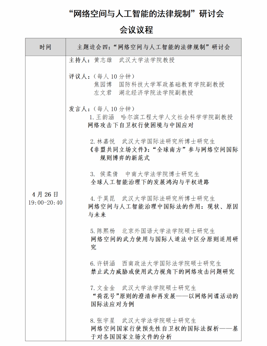 主题:“网络空间与人工智能的法律规制”研讨会