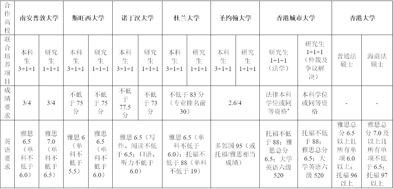 报名材料:有效期内的英语成绩证明、本校成绩单、个人陈述、推荐信(以合作高校具体要求为准)