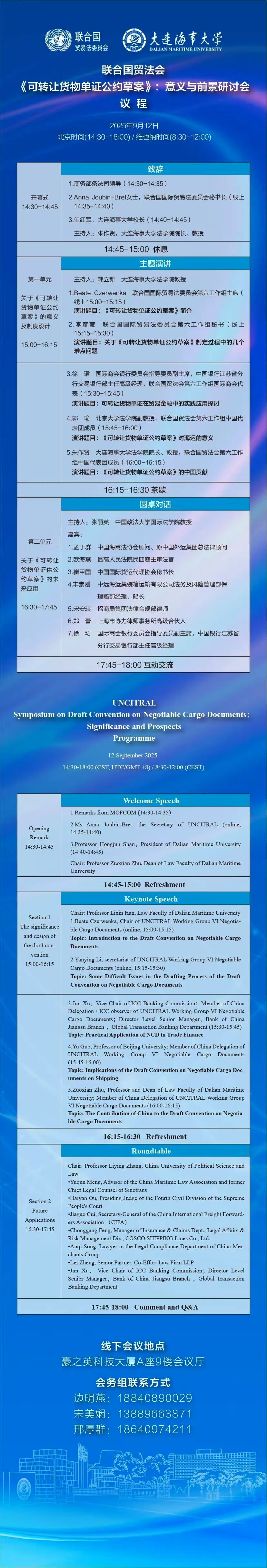 会议议程 | 联合国贸法会《可转让货物单证公约草案》:意义与前景研讨会议程