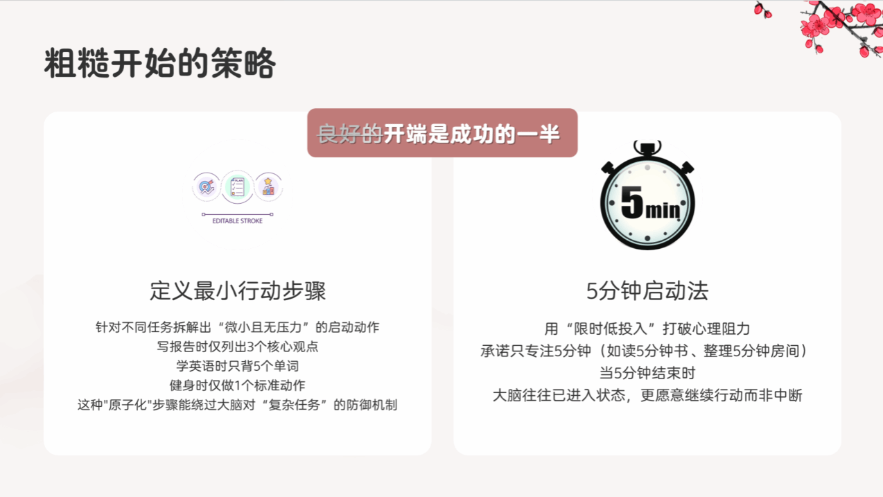 在心理教育总结环节,老师特别分享了《粗糙》一书的观点:开始就已经是成功的一半,我们不需要一个完美的开始,而是要树立不断迭代的成长观。