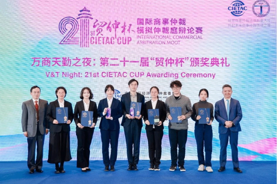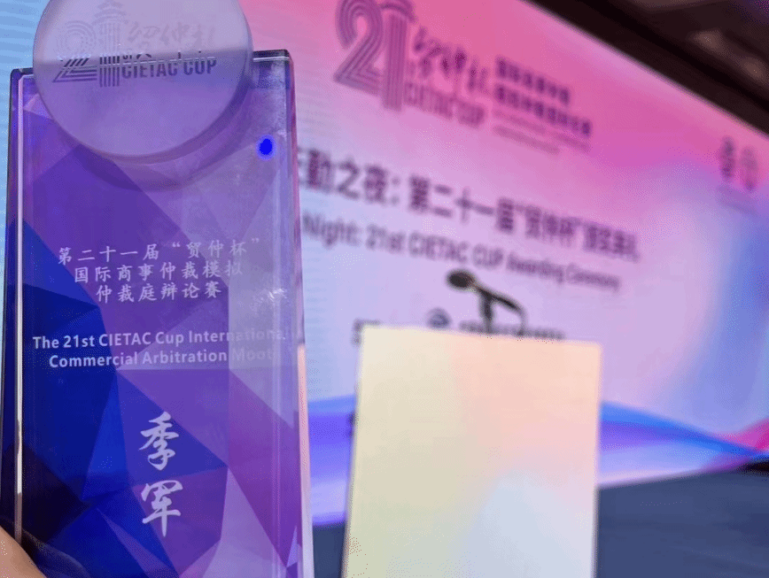 2023年11月29日至12月8日,第二十一届“贸仲杯”通过线上和线下相结合的方式成功举办,吸引了来自英国、荷兰、中国香港、中国澳门等国家和地区以及中国境内各省市的97支代表队参与比赛,包括香港大学、北京大学、清华大学等高校,共计1000余名青年学子同场竞技,其参赛队数、队员人数和比赛场次数再创历史新高,整体赛事水平不断提高。经过4轮循环赛、淘汰赛和半决赛的激烈角逐,我校代表队荣获国家一等奖,位列全国“季军”!