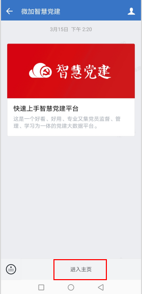 首先,打开企业微信,找到“微加智慧党建”,点击进入主页。